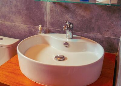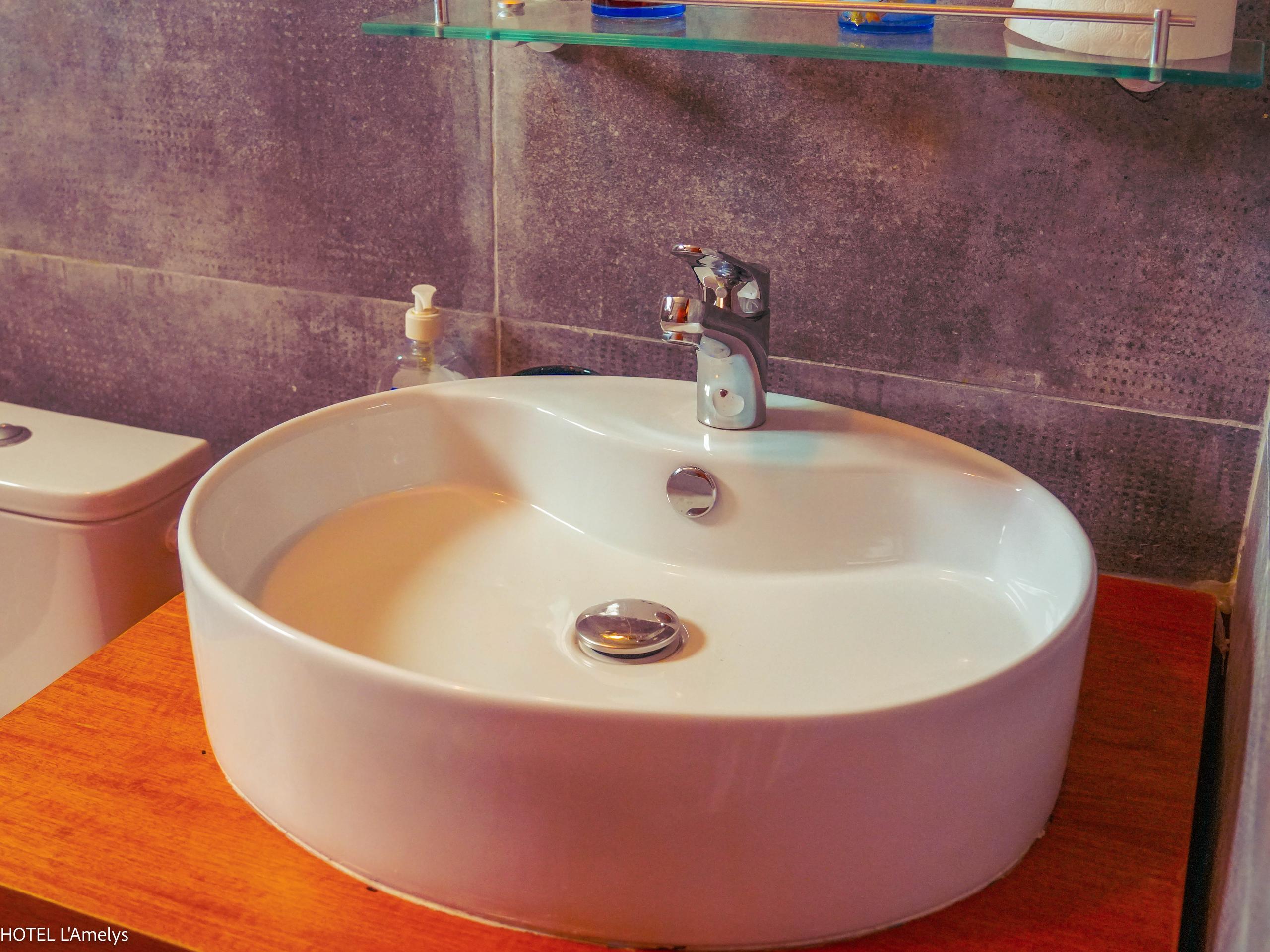 Une salle de bain privative pour la suite parentale, une salle de bain secondaire et un toilette visiteur.
