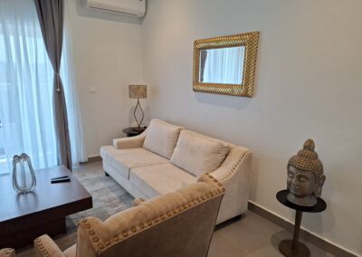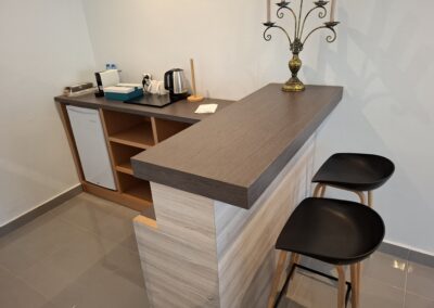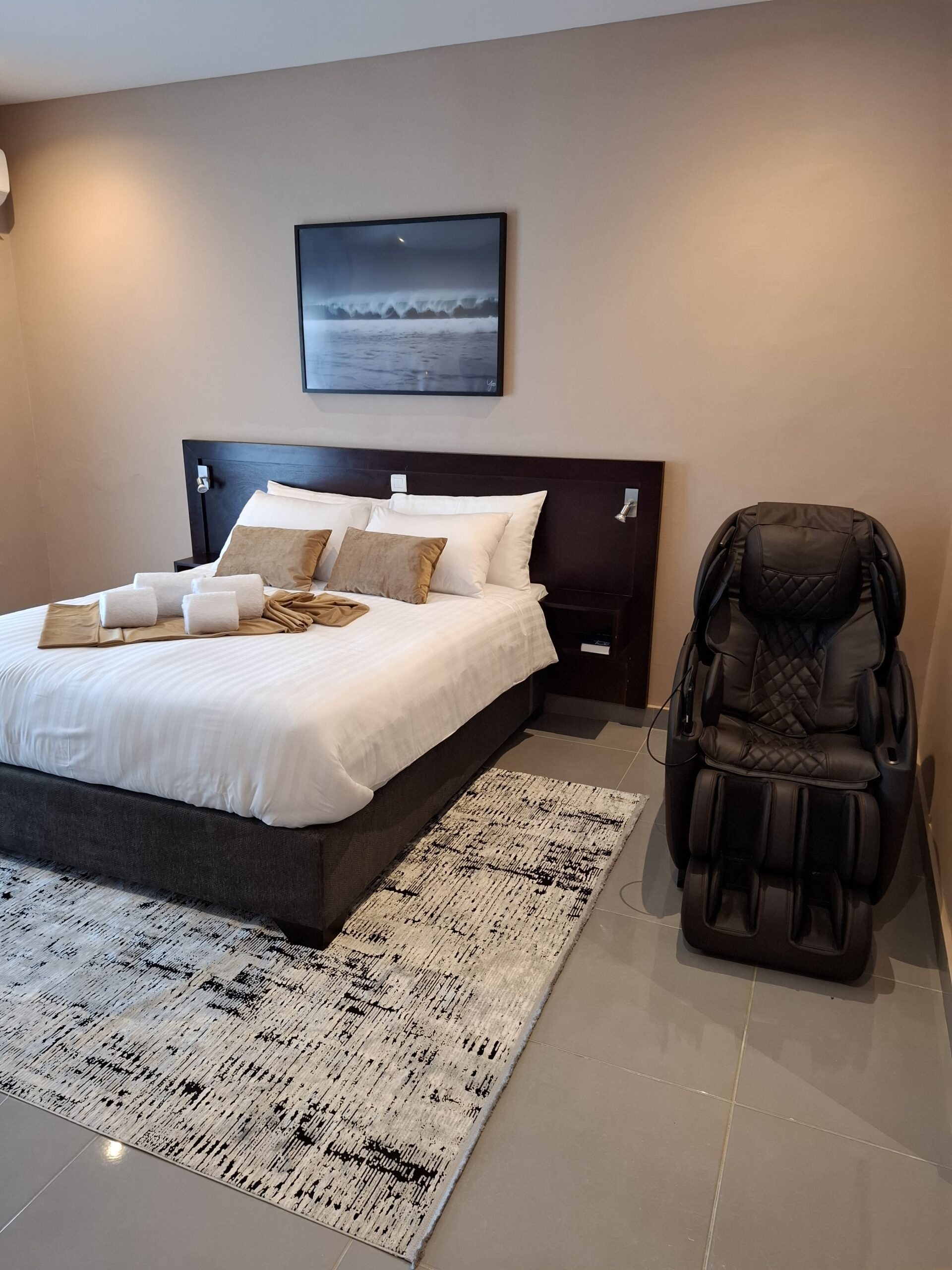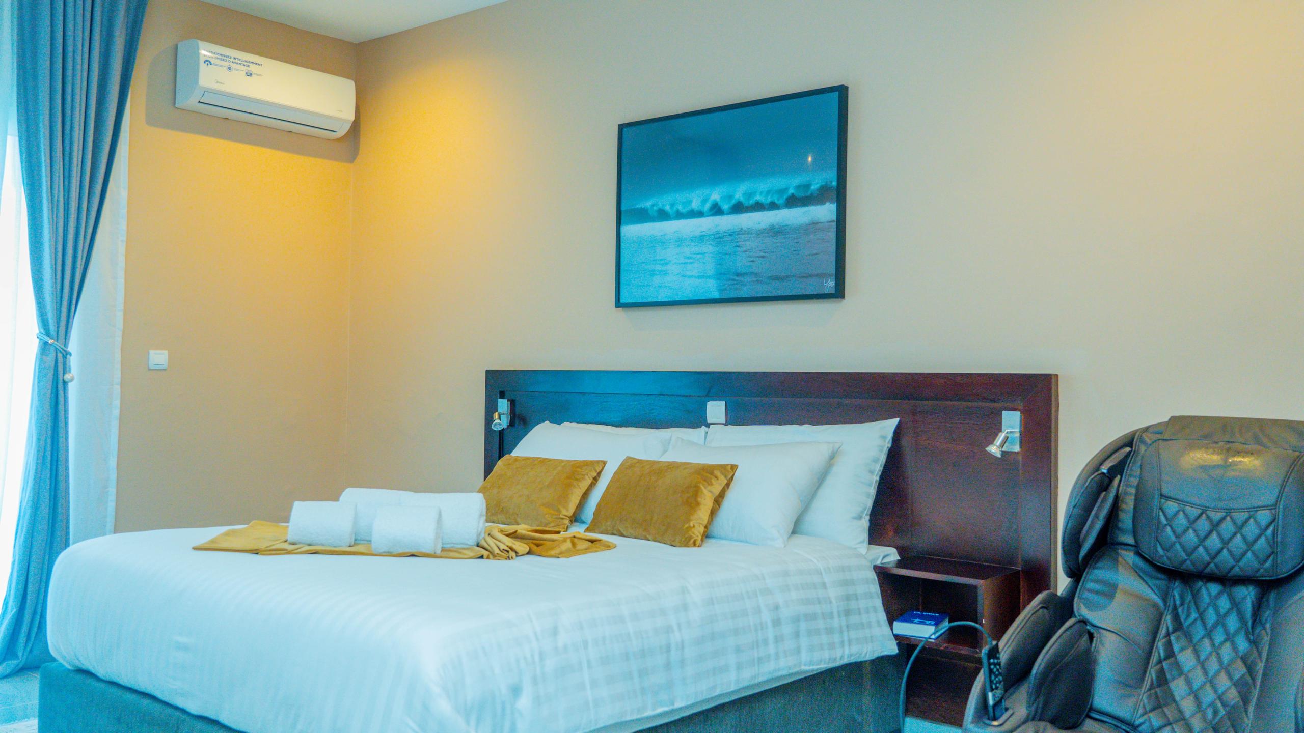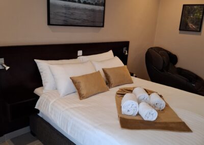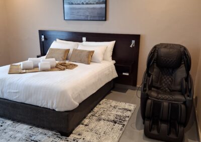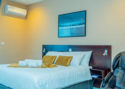 Décorée dans une palette de tons doux, la suite spéciale vous fera découvrir des paysages inédits du Gabon.